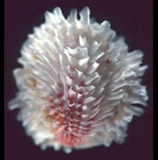 The camera used was a Nikon FE-2 equipped with either a Micro-Nikor 55 mm f 3.5 lens with or without a PK-13 extension ring or a Nikor 24 mm f 2.8 lens reversed using a Nikon BR-2 ring. The shutter was set at B and a locking cable release was employed. The camera was mounted on a table top copystand. The lens was fitted with a CokinTM filter adapter and Cokin blue filters were used to color balance the light. If added control of color balance is needed, color compensating (CC) filters provide color corrections in densities ranging from .025 to .50 (the decimal is normally omitted in the designation). The stage was a modified dissection microscope stage which was moved either up or down using a focusing motor attachment controlled by a foot switch . The revolution rate is fixed at about 2 rpm which gives a linear stage speed of about 38mm/min. in our case. Another good source for a stage is described by Nile Root (Root, 1985) who used a telescope eyepiece focusing assembly connected to a 12 volt DC motor. Any smooth rack and pinion movement which can be motorized will work. We found the microscope stage had the advantage of greater vertical travel, 6 inches rather than 3 inches, which is needed for larger subjects. Film selection was based on several factors; since the main purpose of photographing these images was to document a large shell collection, 35mm slides were considered the best choice for cost and cataloging purposes. To ensure maximum detail, color saturation and for archival qualities Kodachrome 25 ISO 25/15o was selected. To test our home made SLP system and to determine approximate exposure we first used a roll of Technical Pan 2415 film rated at ISO 25/15o. A series of exposures were made in 1/2 stop increments using the aperture control ranging from f 5.6 to f 22. After this series was developed (using Technidol LC developer) and evaluated, the best range of apertures was determined. Taking into consideration the addition of filters for color balance f 8 to f 11 gave the best results. The last consideration was the color balance of the Kodachrome. Ektagraphic slide projectors provide a strong source of illumination rated at approximately 3350K, a bit warm for natural results with daylight balanced film. By running several series of bracketed exposures with different combinations of Cokin filters (023, 024, 025) the best combination was selected for correct color balance. This procedure is necessary every time a new film lot is purchased, because all color films have slightly different color balance. It is, therefore, advisable to purchase a "brick" of film (twenty rolls of film packaged from the same emulsion lot) if color rendition is critical. The benefits of SLP do not come without some sacrifice. The highly directional lighting used is both a blessing and a curse. The images, because of the lighting, give a heightened sense of detail. For the shells it is often the case that minute details become much more apparent in the photograph than when viewed with less directional lighting. Since this is also the case with tiny pieces of dust and lint, preparation of SLP samples requires careful inspection and cleaning using compressed air or a soft brush. A fine tipped pair of forceps (#5 DumontTM) and a good loupe or dissection microscope are also very handy for this purpose. Contrast control is another potential problem with SLP. Again, due to the type of lighting used, photographs can be extremely harsh. This is most common with deeply textured subjects. The use of three light sources rather than two will help reduce contrast for some subjects, while adjustment of sample alignment to the plane of light will sometimes reduce exaggerated shadows and harsh edge effects. Finally, selection of negative rather than positive film helps to keep the shadows from blocking up and subsequent loss of detail is reduced. In previous articles on SLP, light piping has been described as a problem when photographing translucent subjects. Such piping can cause ghost images on a photograph. We found this did not present much of a problem with the shells even though many of them are translucent. This is attributed to the selection of Kodachrome 25 film which has an extremely high threshold. Due to the high threshold, the areas that the light is piped to on translucent subjects are not nearly bright enough to create ghost images. The very nature of SLP gives a dramatic appearance to subjects photographed using this technique. Only the subject is recorded on the film leaving all else a deep rich black. This is often beneficial, but at times it can present problems. For instance, if the subject being photographed is very dark it tends to blend in with the background. Nile Root of RIT has written of experimentation using double exposure to add colors to the background (Root, 1985). At this time, however, we have not found any articles that describe in detail how this is done and what the results have been. The original intent of using SLP was to begin